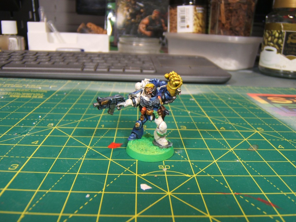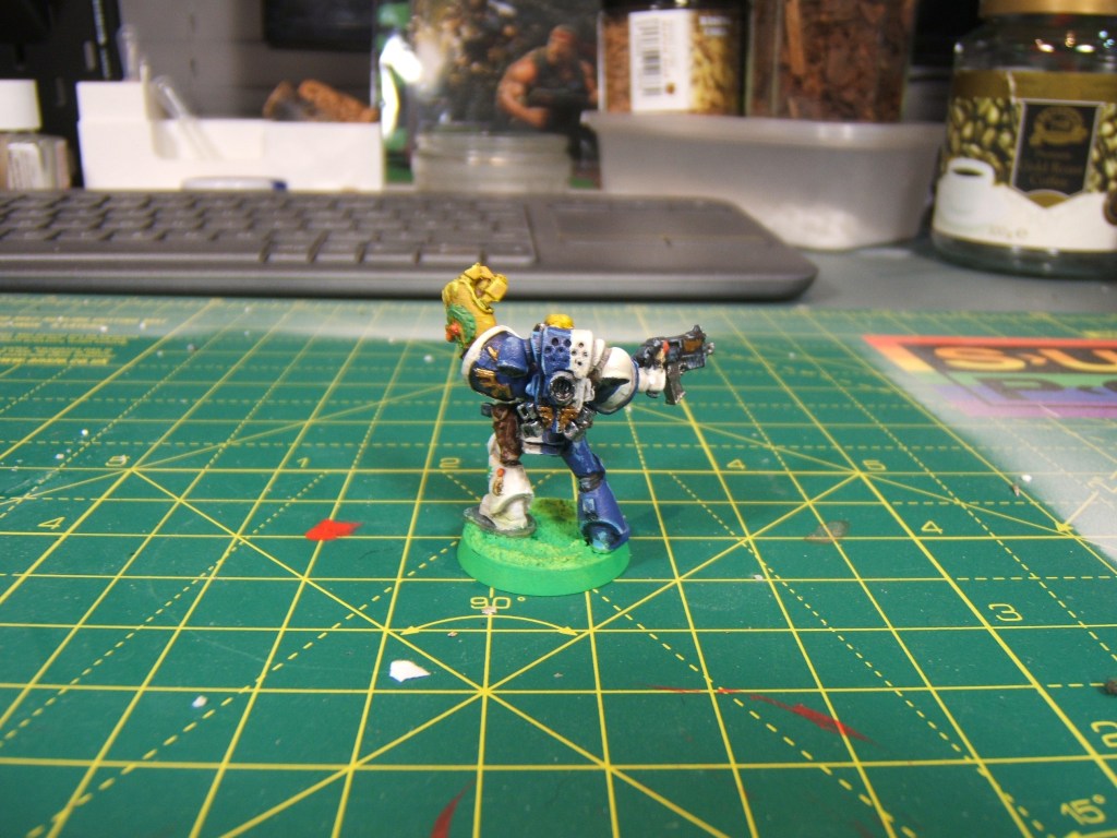 This model was printed mainly so that I would have some leader options (I have an era-appropriate chaplain, librarian and apothecary but no captain) but also so that I could test some colour schemes without wasting or damaging a much more valuable model.